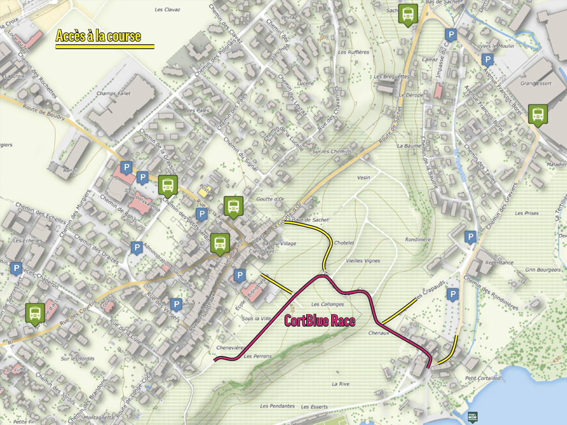 Depuis l’arrêt du tram d’Areuse, il vous suffit de prendre le bus jusqu’à l’arrêt «Bas-de-Sachet» et de marcher jusqu’au centre du bas du village, ou alors depuis le haut de Cortaillod en se rendant à pied sur le long du parcours.